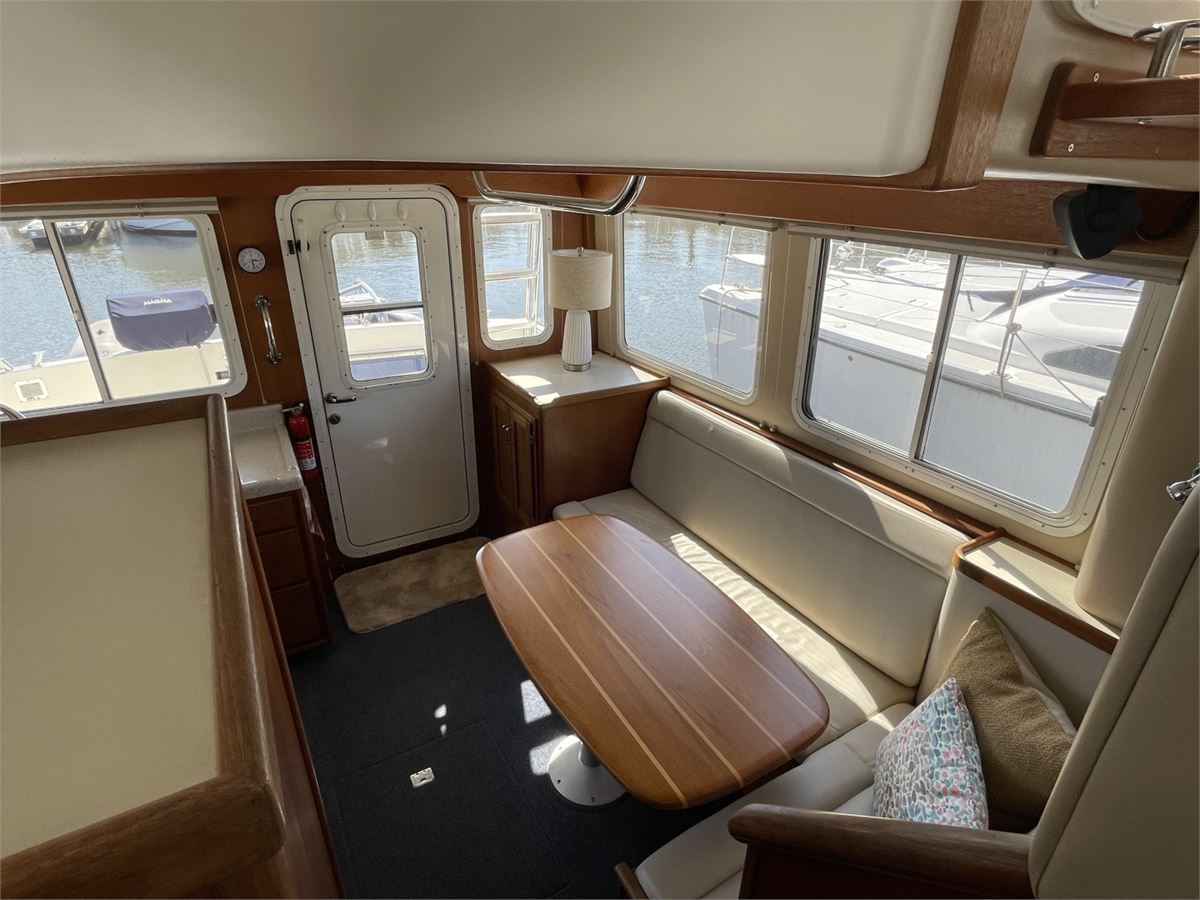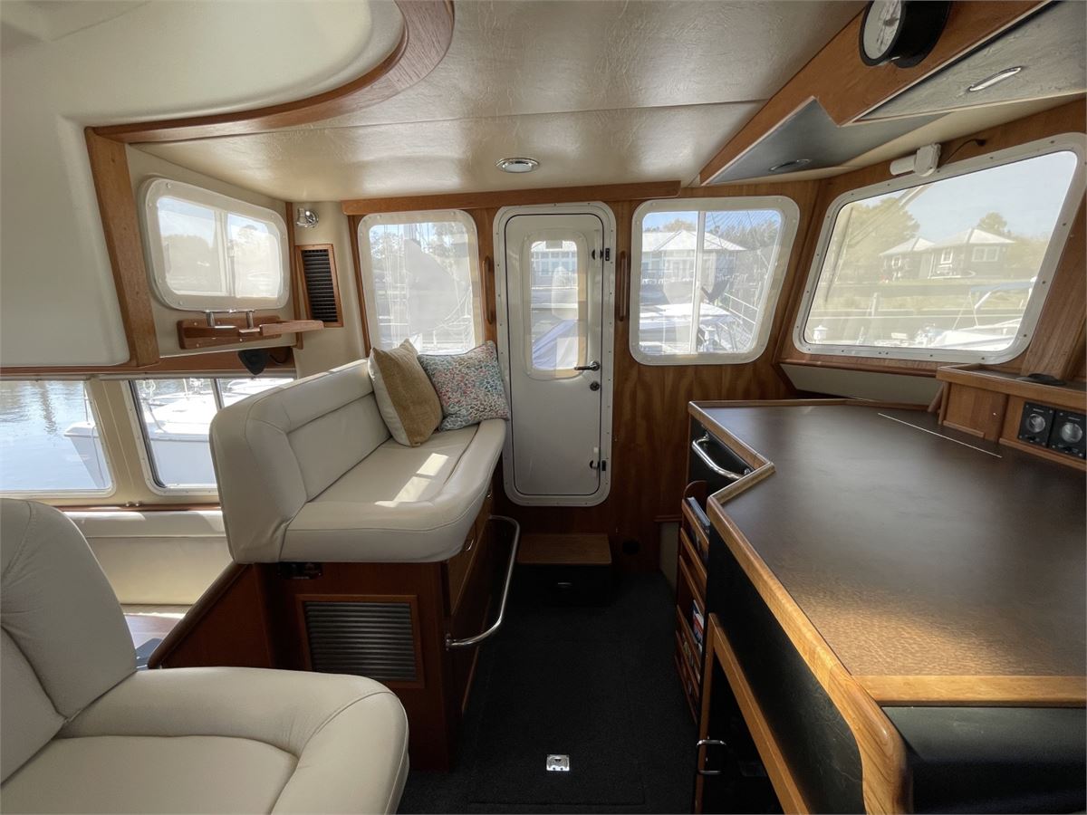 Cozy Pilothouse seats 4 and has watertight doors to port and starboard side decks.