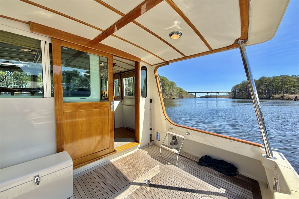 SANTORINI is a classic Downeast sedan that stands out on any waterway. Built on the proven Duffy 37 hull and finished by Campbell Custom Yachts as an “Atlantic 37,” she combines traditional craftsmanship with modern performance. Her full-keel fiberglass design provides excellent seaworthiness and tracking, making her well-suited for cruising the East Coast, Great Lakes, or ICW. Below deck, a teak sole and rich cherry interior create a warm, inviting atmosphere with a refined yacht feel. Lovingly maintained by her original owners, SANTORINI presents a rare opportunity to own a respected and capable cruiser. With impressive ride quality, range, and comfort, she’s equally appealing to experienced boaters and those new to yachting. Turn-key and ready to go, she’s prepared for her next adventure.