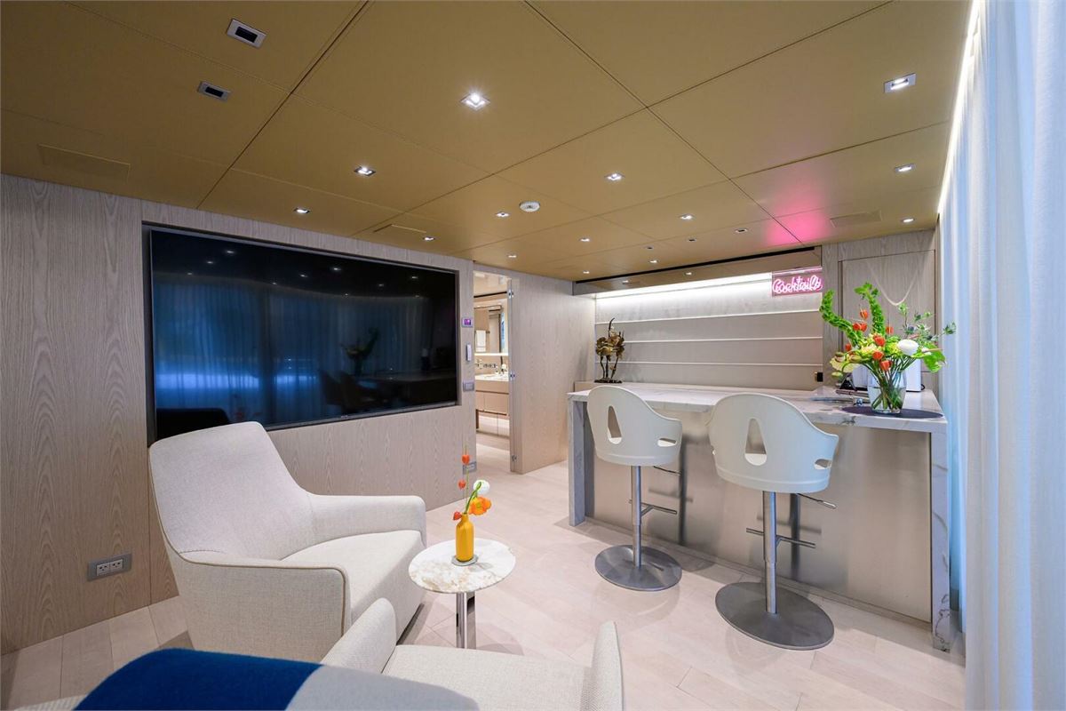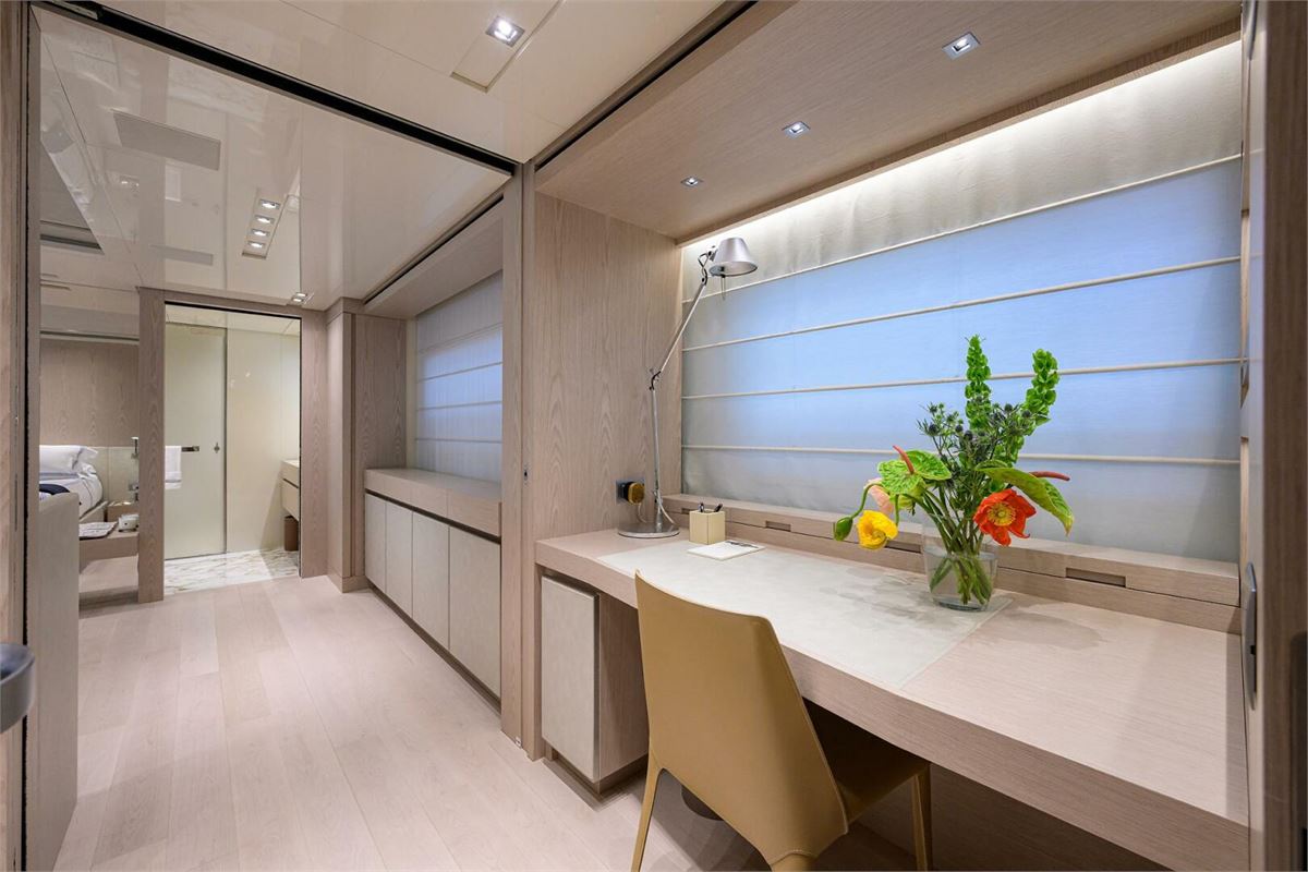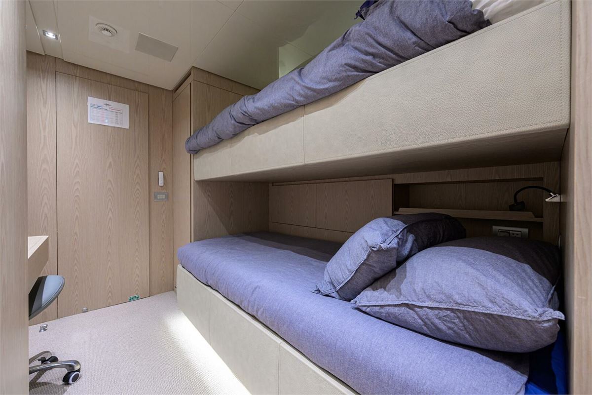 Introducing the Sanlorenzo SD126 yacht, designed by Francesco Paszkowski with Marty Lowe interiors. This prestigious vessel features 5 staterooms, including an on-deck Owner's suite and a VIP suite on the skylounge deck, accommodating 10 guests and 8 crew members. Powered by twin Caterpillar C32 Acert diesel engines with Platinum Extended Warranties until June 2025. She exemplifies Sanlorenzo's superior craftsmanship and modern technology. Enjoy spacious decks with a jacuzzi, sunbathing areas, and dining spaces with panoramic views. The main salon and skylounge offer contemporary luxury with light wood flooring, elegant finishes, and ample natural light.