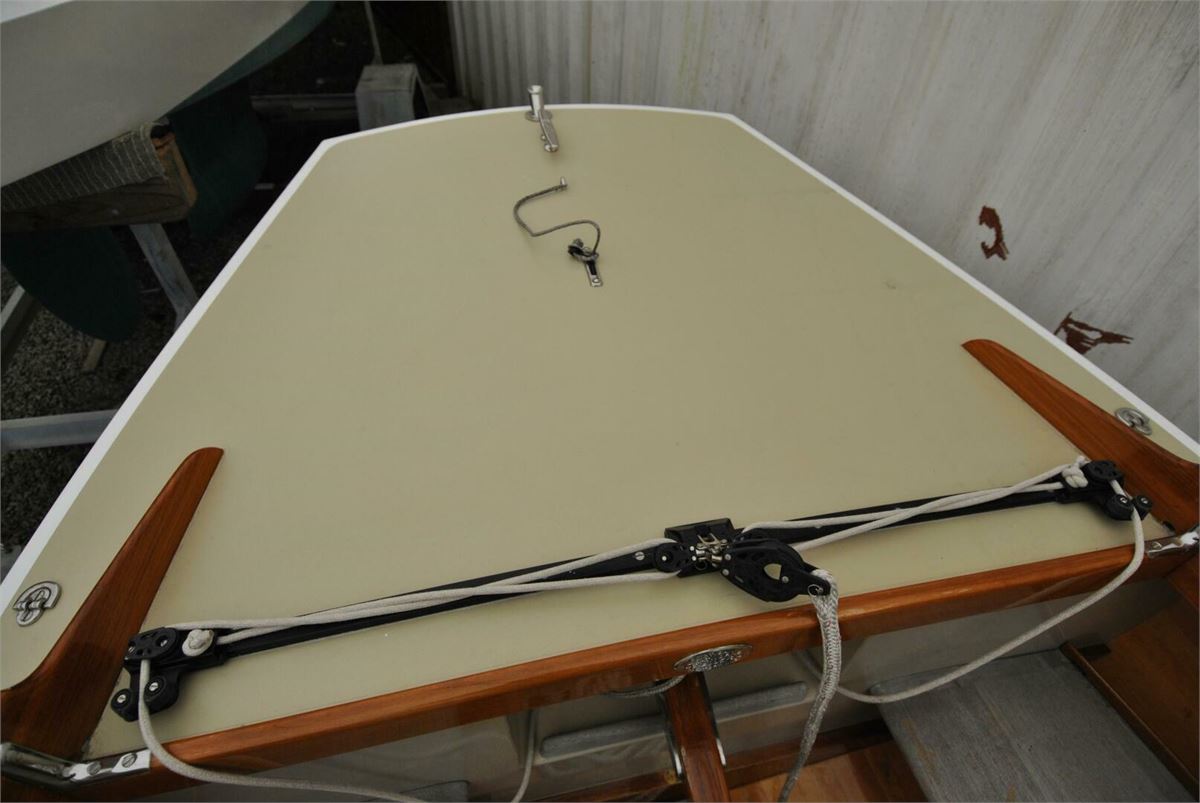 FILLY is a pristine W-22 daysailer that perfectly blends classic design with exceptional sailing performance. Crafted by Artisan Boatworks in Rockport, Maine, and designed by Joel and Steve White, she features a weighted centerboard and nearly 1,000 lbs. of lead ballast, providing remarkable stability and a shallow 22-inch draft (5′ 7″ down) for easy access to hidden coves. Her finely varnished wood, elegant joinery, and sculpted seating make her as visually striking as she is seaworthy. Ideal for day sailing, one-design racing, or simply enjoying the artistry of traditional wooden construction, FILLY offers timeless appeal for sailors who appreciate both form and function.