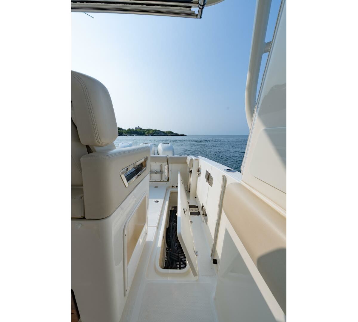 Pressurized livewell, prep station, refrigerated cooler, radial outriggers, and 7 rod holders