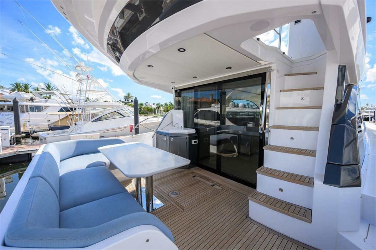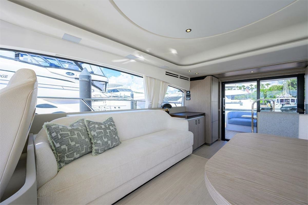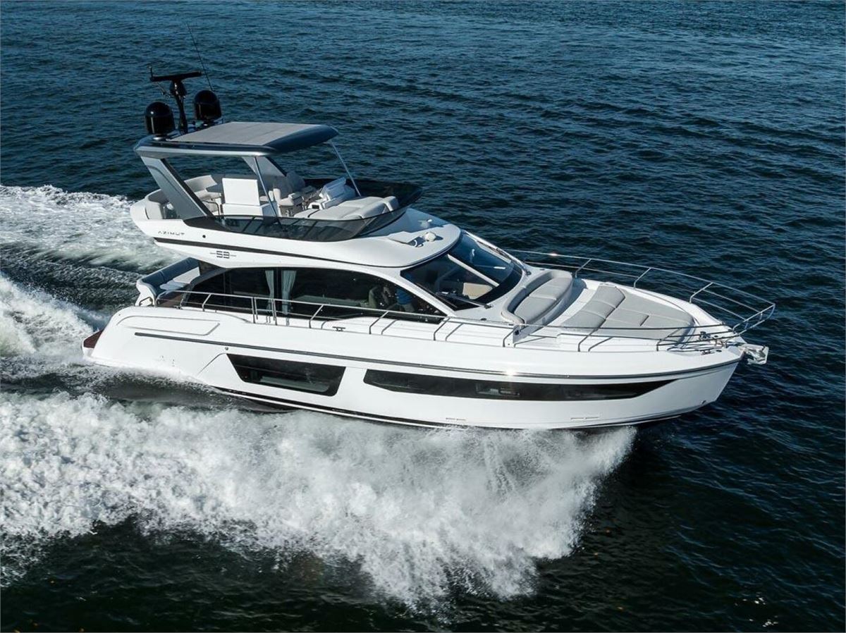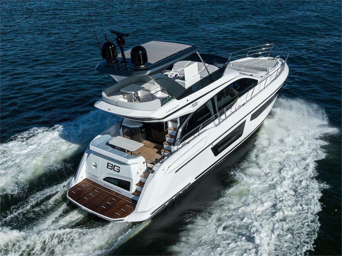 BG is a 2024 Azimut 53 Fly offering one of the best layouts in its class. This 53-foot yacht features a full-beam master with ensuite head, VIP with walk-around queen, a twin bunk room, and separate crew quarters with ensuite head. Highlights include expansive bow seating, a spacious flybridge, and seamless indoor-outdoor flow on the main deck. Powered by twin Volvo D11 IPS 950s with Interceptor trim and SeaKeeper 9 gyro-stabilization, BG delivers impressive performance, efficiency, and ride comfort. BG is in excellent condition.