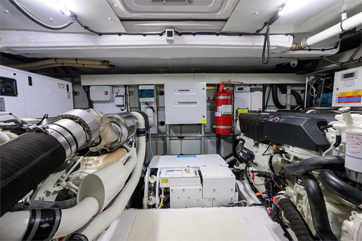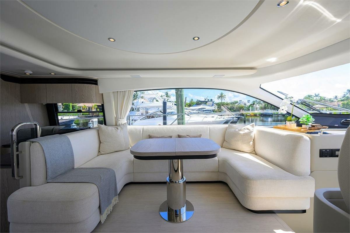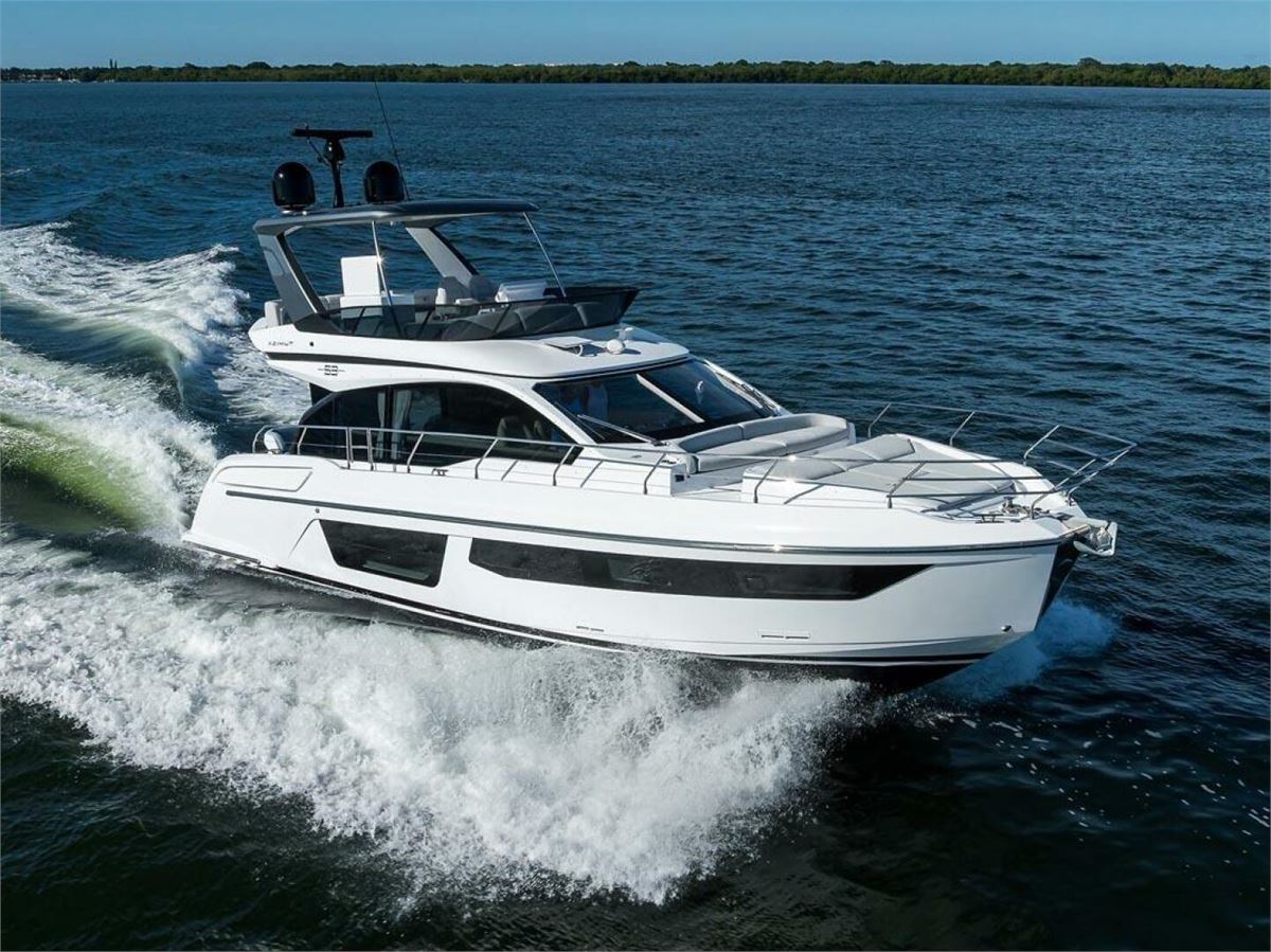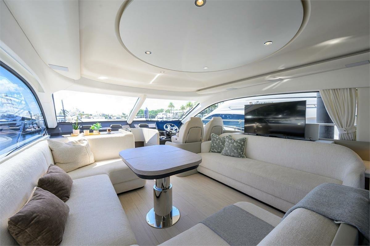 BG is a 2024 Azimut 53 Fly offering one of the best layouts in its class. This 53-foot yacht features a full-beam master with ensuite head, VIP with walk-around queen, a twin bunk room, and separate crew quarters with ensuite head. Highlights include expansive bow seating, a spacious flybridge, and seamless indoor-outdoor flow on the main deck. Powered by twin Volvo D11 IPS 950s with Interceptor trim and SeaKeeper 9 gyro-stabilization, BG delivers impressive performance, efficiency, and ride comfort. BG is in excellent condition.