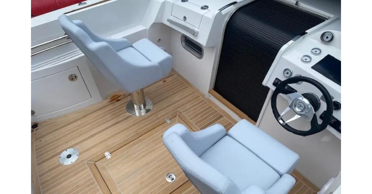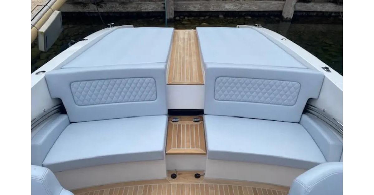 - Revetement teck + joint gris clairs plateforme de bain, pont avant, cockpit