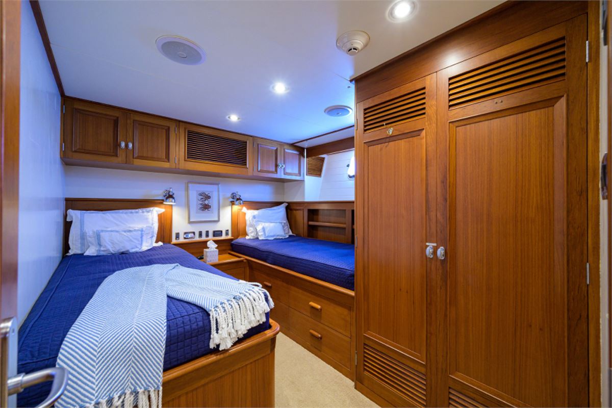 SEA BOLD, a custom-built motor yacht reminiscent of C. Raymond Hunt's classic designs was crafted in 2003 by New England Boatworks in Rhode Island. This unique vessel boasts a timeless elegance paired with high functionality, perfect for yachting enthusiasts seeking luxury and performance. Constructed with Kevlar and Carbon Fiber composite, SEA BOLD offers exceptional strength and seakeeping abilities with a deep vee hull design. Following a refit in 2019-2020, she remains in immaculate condition under the care of a dedicated captain/engineer and steward. With a fast-cruising speed of 22 knots and top speed of 25 knots, SEA BOLD offers both efficiency and performance for an enjoyable cruising experience.