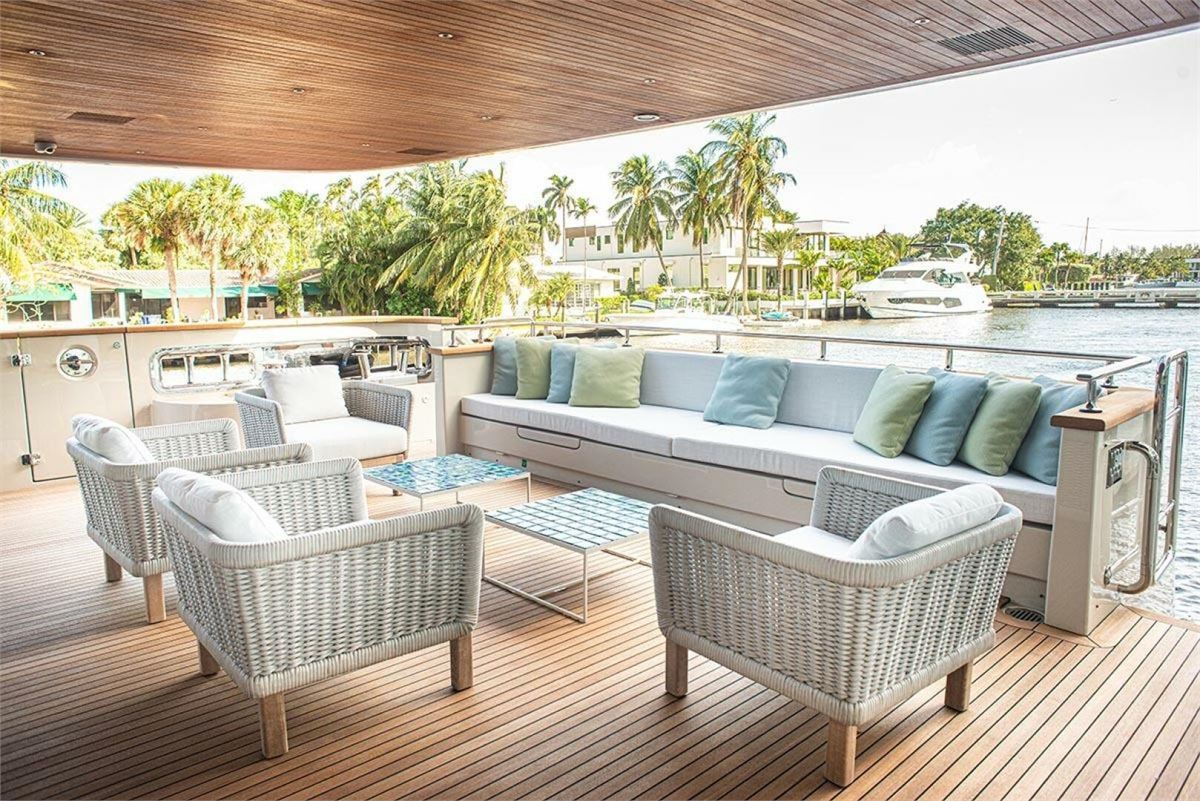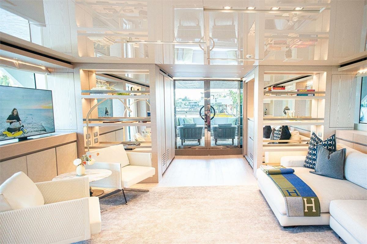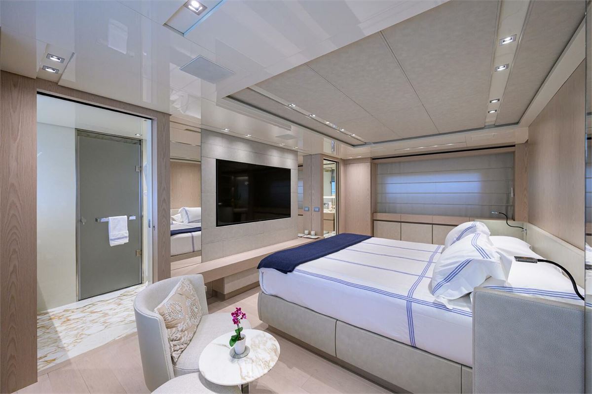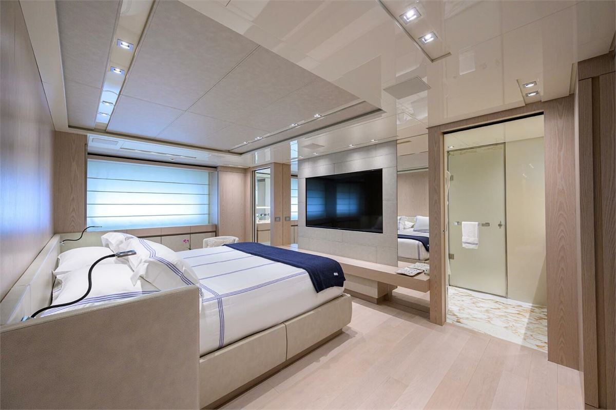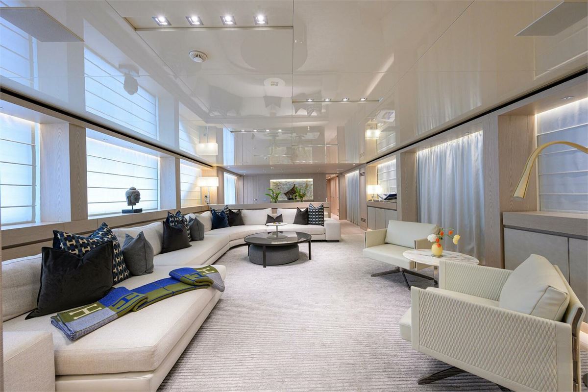 Introducing the Sanlorenzo SD126 yacht, designed by Francesco Paszkowski with Marty Lowe interiors. This prestigious vessel features 5 staterooms, including an on-deck Owner's suite and a VIP suite on the skylounge deck, accommodating 10 guests and 8 crew members. Powered by twin Caterpillar C32 Acert diesel engines with Platinum Extended Warranties until June 2025. She exemplifies Sanlorenzo's superior craftsmanship and modern technology. Enjoy spacious decks with a jacuzzi, sunbathing areas, and dining spaces with panoramic views. The main salon and skylounge offer contemporary luxury with light wood flooring, elegant finishes, and ample natural light.